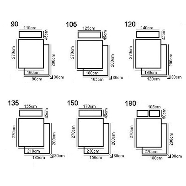 Camas de 90, 105, 135 y 150 incluyen una sola funda de almohada.